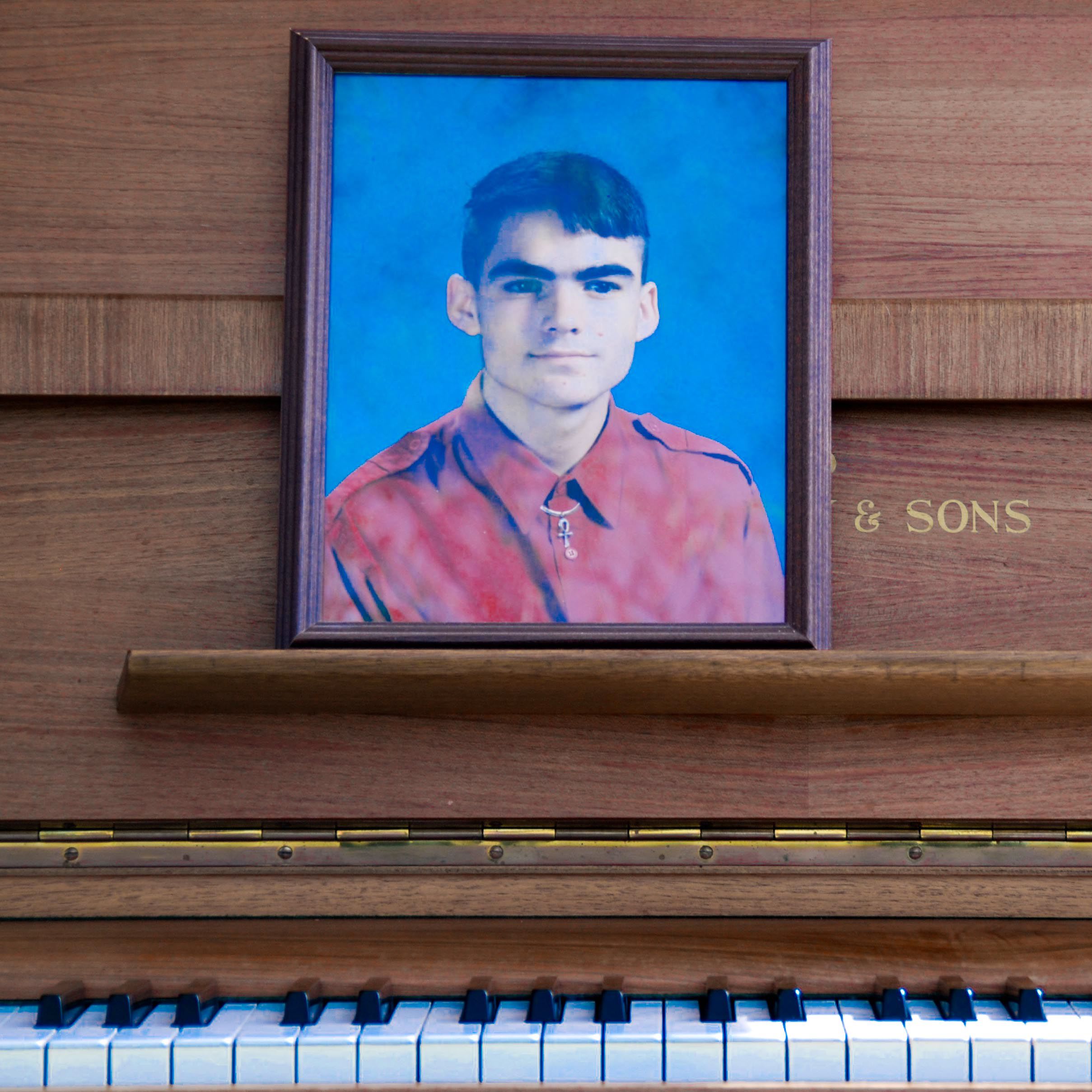 Steve Schalchlin plays John Lennon's IMAGINE Piano facing a photo of Bill Clayton, whose story is told in "Gabi's Song (Will It Always Be Like This?)". Location: The tree-shaded front yard of Gabi & Alec Clayton, Bill's parents. Olympia, Washington.